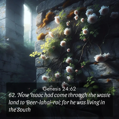 62. Now Isaac had come through the waste land to Beer-lahai-roi; for he was living in the South.