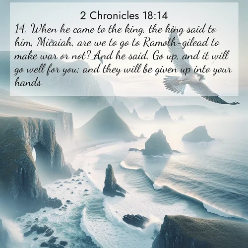 14. When he came to the king, the king said to him, Micaiah, are we to go to Ramoth-gilead to make war or not? And he said, Go up, and it will go well for you; and they will be given up into your hands.
