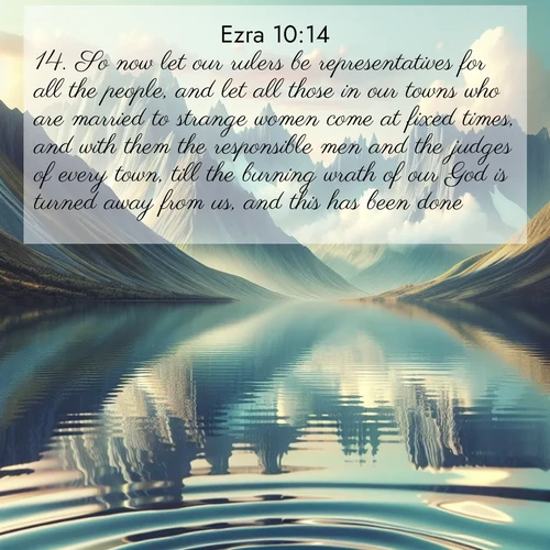 Ezra 10:14. So now let our rulers be representatives for all the people, and let all those in our towns who are married to strange women come at fixed times, and with them the responsible men and the judges of every town, till the burning wrath of our God is turned away from us, and this has been done.