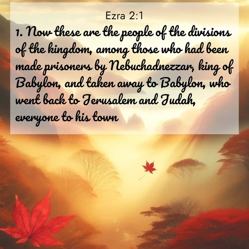 Summary: Ezra Chapter 2 details the return of the exiles from Babylon to Jerusalem after the decree of King Cyrus. The chapter provides a genealogy of the returning families, emphasizing the continuity of Israel's identity despite their years in exile. It lists over 40,000 individuals, including men, women, and children, along with their livestock and temple servants, highlighting the strong communal aspect of the return. Key themes include restoration, the importance of heritage and ancestry, and God's faithfulness in fulfilling His promises to His people. The meticulous recording of names and numbers serves to legitimize the return and re-establish the community of Israel in their homeland. Additionally, the chapter underscores the importance of collective worship and the rebuilding of the temple, setting the stage for spiritual renewal. Ultimately, it conveys a message of hope and revival for the people of Israel as they embark on the journey to restore their homeland and identity.