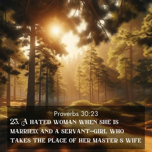 Read the Bible Verse Proverbs 30:23 in other verses of the Bible. See => multilingual verses Proverbs 30:23