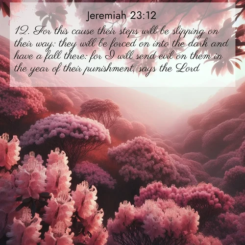 Jeremiah 23:12. For this cause their steps will be slipping on their way: they will be forced on into the dark and have a fall there: for I will send evil on them in the year of their punishment, says the Lord.