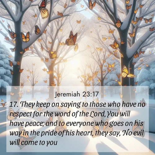 Jeremiah 23:17. They keep on saying to those who have no respect for the word of the Lord, You will have peace; and to everyone who goes on his way in the pride of his heart, they say, No evil will come to you.