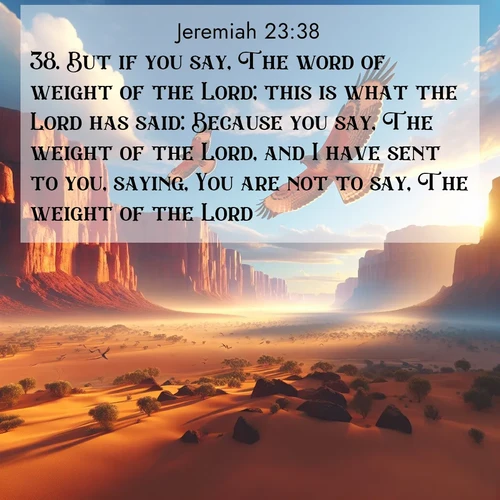 Jeremiah 23:38. But if you say, The word of weight of the Lord; this is what the Lord has said: Because you say, The weight of the Lord, and I have sent to you, saying, You are not to say, The weight of the Lord;