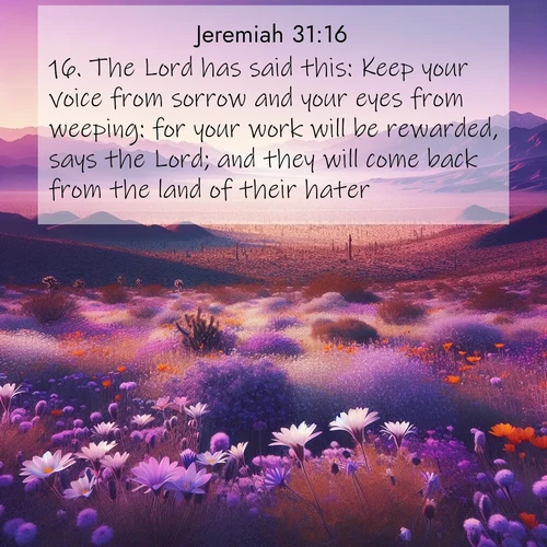 16. The Lord has said this: Keep your voice from sorrow and your eyes from weeping: for your work will be rewarded, says the Lord; and they will come back from the land of their hater.
