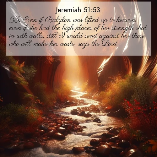 53. Even if Babylon was lifted up to heaven, even if she had the high places of her strength shut in with walls, still I would send against her those who will make her waste, says the Lord.