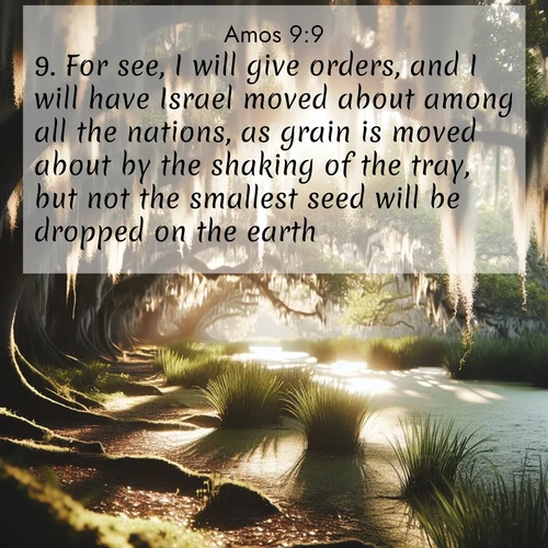 9. For see, I will give orders, and I will have Israel moved about among all the nations, as grain is moved about by the shaking of the tray, but not the smallest seed will be dropped on the earth.