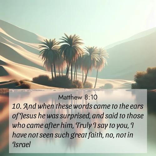 10. And when these words came to the ears of Jesus he was surprised, and said to those who came after him, Truly I say to you, I have not seen such great faith, no, not in Israel.