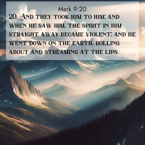 20. And they took him to him: and when he saw him, the spirit in him straight away became violent; and he went down on the earth, rolling about and streaming at the lips.