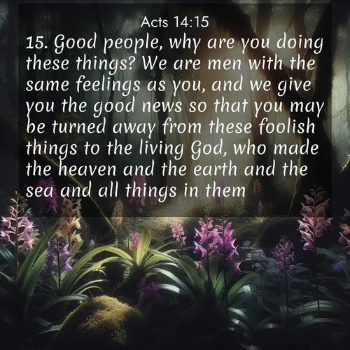 15. Good people, why are you doing these things? We are men with the same feelings as you, and we give you the good news so that you may be turned away from these foolish things to the living God, who made the heaven and the earth and the sea and all things in them: