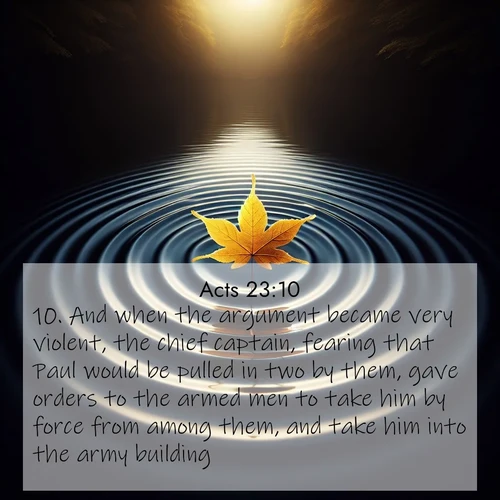 Acts 23:10. And when the argument became very violent, the chief captain, fearing that Paul would be pulled in two by them, gave orders to the armed men to take him by force from among them, and take him into the army building.