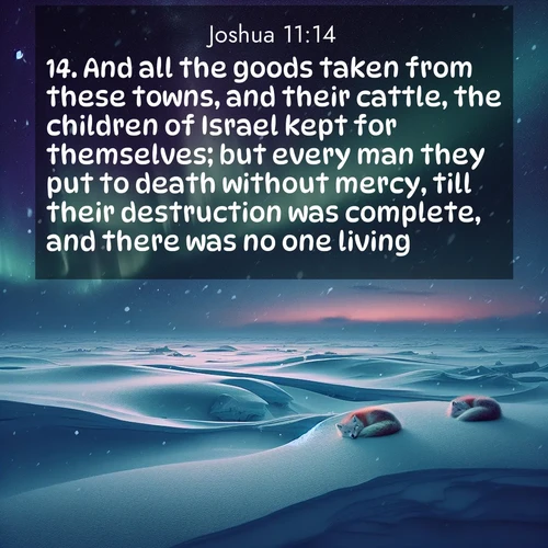 14. And all the goods taken from these towns, and their cattle, the children of Israel kept for themselves; but every man they put to death without mercy, till their destruction was complete, and there was no one living.