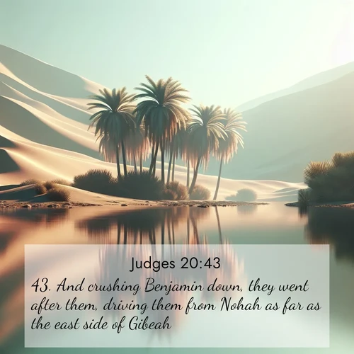 Judges 20:43. And crushing Benjamin down, they went after them, driving them from Nohah as far as the east side of Gibeah.
