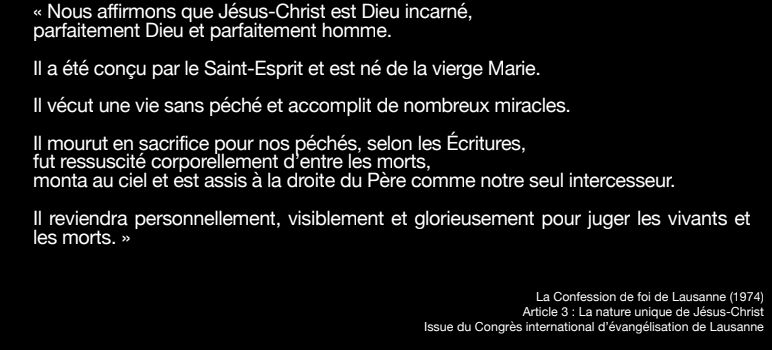 diapo « La Confession de foi de Lausanne (1974) Article 3 Matthieu 16 »