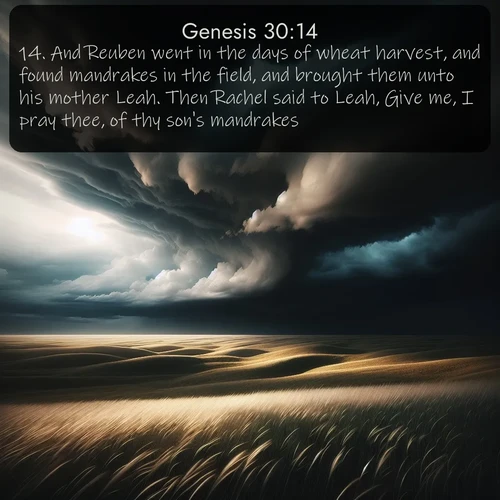 14. And Reuben went in the days of wheat harvest, and found mandrakes in the field, and brought them unto his mother Leah. Then Rachel said to Leah, Give me, I pray thee, of thy son's mandrakes.