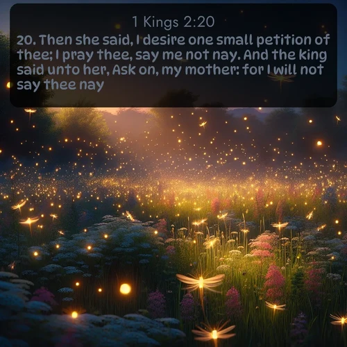 Read the Bible Verse 1 Kings 2:20 in other verses of the Bible. See => multilingual verses 1 Kings 2:20
