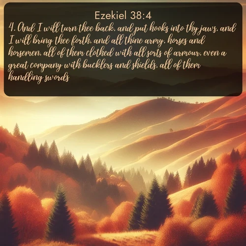 4. And I will turn thee back, and put hooks into thy jaws, and I will bring thee forth, and all thine army, horses and horsemen, all of them clothed with all sorts of armour, even a great company with bucklers and shields, all of them handling swords: