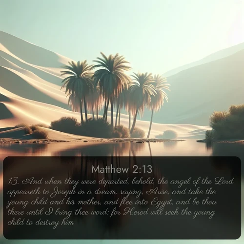 13. And when they were departed, behold, the angel of the Lord appeareth to Joseph in a dream, saying, Arise, and take the young child and his mother, and flee into Egypt, and be thou there until I bring thee word: for Herod will seek the young child to destroy him.