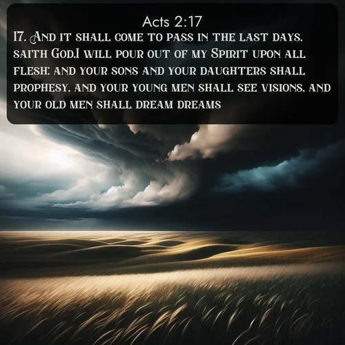 17. And it shall come to pass in the last days, saith God,I will pour out of my Spirit upon all flesh: and your sons and your daughters shall prophesy, and your young men shall see visions, and your old men shall dream dreams: