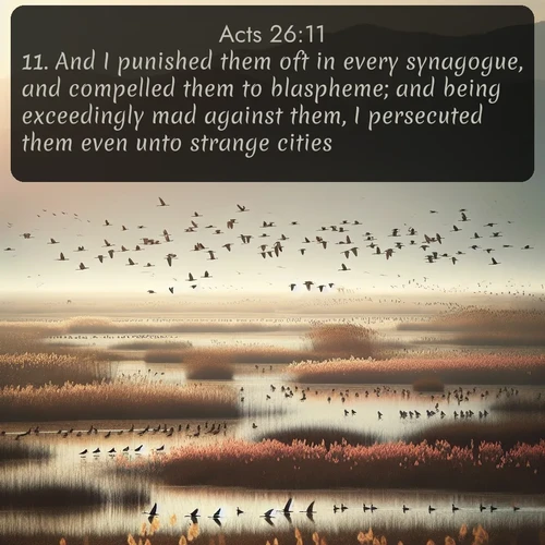 11. And I punished them oft in every synagogue, and compelled them to blaspheme; and being exceedingly mad against them, I persecuted them even unto strange cities.
