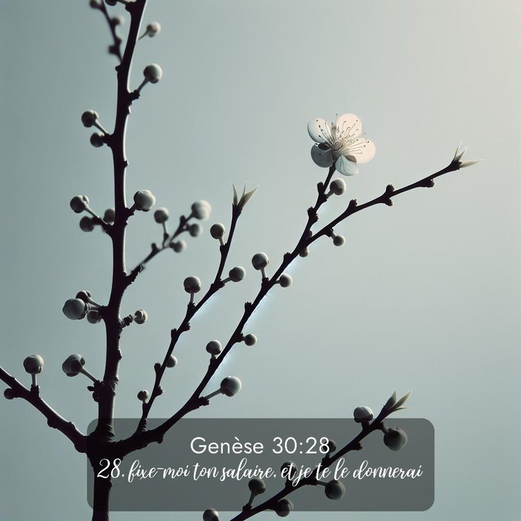 Explorez une collection printanière d'images bibliques, avec des paysages de collines verdoyantes, des fleurs sauvages et des cours d’eau cristallins. Ces images symbolisent l’épanouissement de la création divine. Téléchargez des versets tels que Segond Genèse 30:28 .Les images de versets bibliques sont créées à partir des versets de la Bible Louis Segond (LSG 1910,La Sainte Bible par Louis Segond 1910). Cette traduction française de la Bible, publiée en 1910, est dans le domaine public et correspond dans les grandes lignes à la version française de la King James Bible en Anglais. Vous pouvez consulter La Bible Louis Segond gratuitement online sur notre site. Nous vous encourageons à inclure un lien vers ces pages pour faire connaître cette ressource gratuite à d'autres. L'église Renens AB est content de mettre les images à disposition gratuitement. voir Bible Louis Segond 1912