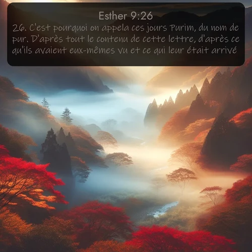 Esther 9:26 . C'est pourquoi on appela ces jours Purim, du nom de pur. D'après tout le contenu de cette lettre, d'après ce qu'ils avaient eux-mêmes vu et ce qui leur était arrivé,