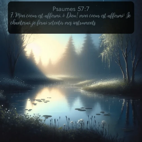 Psaumes 57:7 . Mon coeur est affermi, ô Dieu! mon coeur est affermi; Je chanterai, je ferai retentir mes instruments.