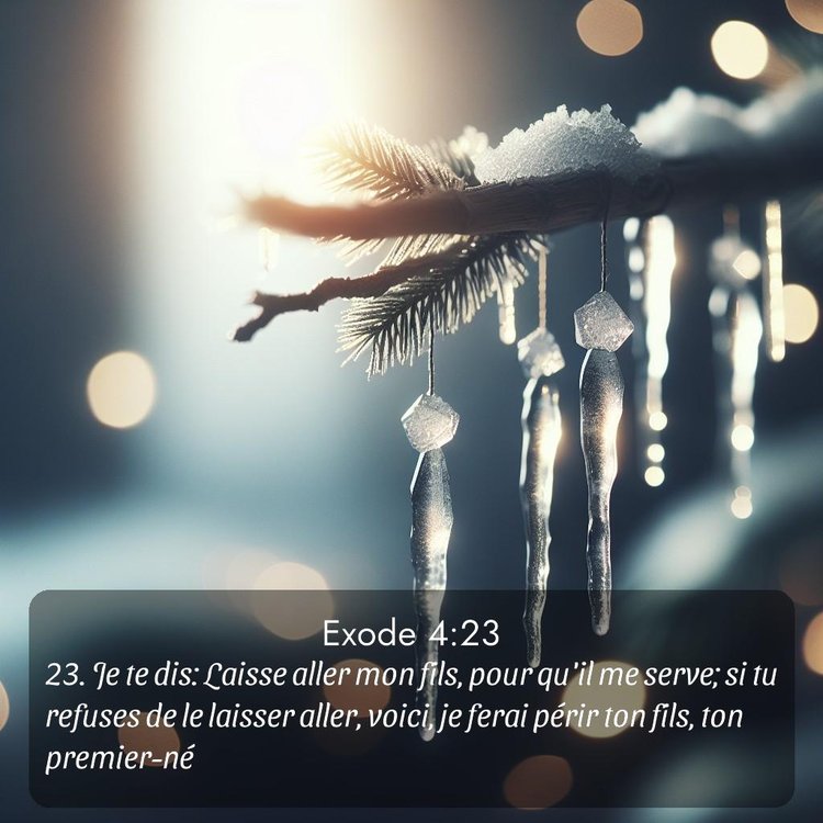 Parcourez une grande collection d'images de versets bibliques avec des photos représentant la splendeur de la nature. Des scènes de rivières paisibles, de vallées verdoyantes et de cieux éclatants viennent sublimer des versets inspirants. Chaque image a été choisie pour refléter la sérénité et la joie de la création divine, avec des textes en polices élégantes. Téléchargez et partagez des versets tels que Segond Exode 4:23 .Les images de versets bibliques sont créées à partir des versets de la Bible Louis Segond (LSG 1910,La Sainte Bible par Louis Segond 1910). Cette traduction française de la Bible, publiée en 1910, est dans le domaine public et correspond dans les grandes lignes à la version française de la King James Bible en Anglais. Vous pouvez consulter La Bible Louis Segond gratuitement online sur notre site. Nous vous encourageons à inclure un lien vers ces pages pour faire connaître cette ressource gratuite à d'autres. L'église Renens AB est content de mettre les images à disposition gratuitement. voir Bible Louis Segond 1912