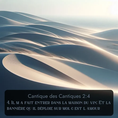 Cantique des Cantiques 2:4 . Il m'a fait entrer dans la maison du vin; Et la bannière qu'il déploie sur moi, c'est l'amour.