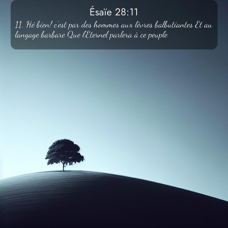 11. Hé bien! c'est par des hommes aux lèvres balbutiantes Et au langage barbare Que l'Eternel parlera à ce peuple.