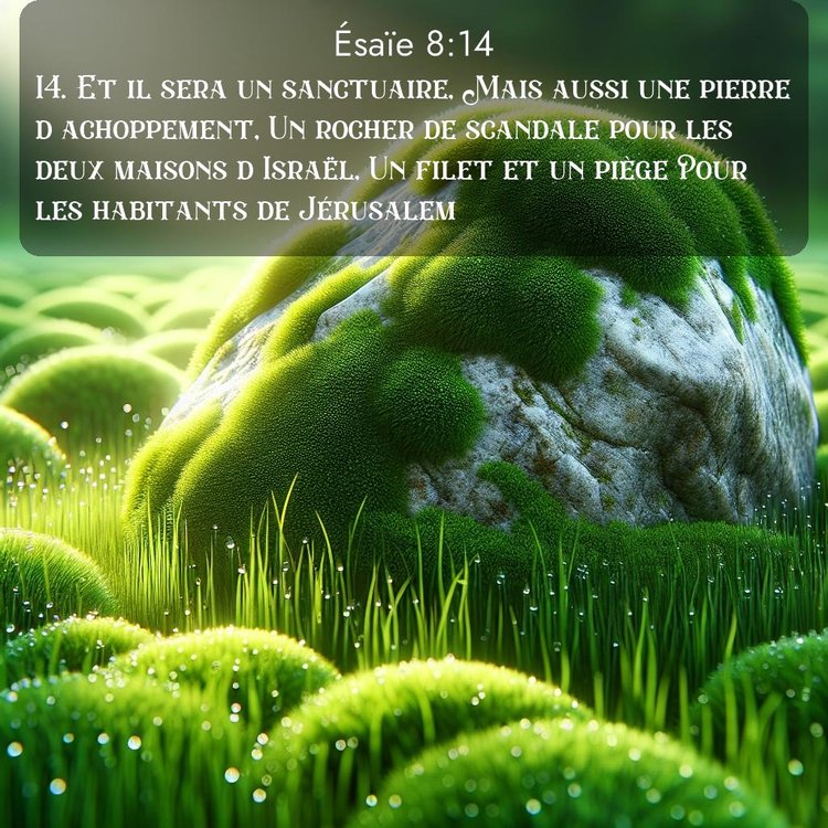 14. Et il sera un sanctuaire, Mais aussi une pierre d'achoppement, Un rocher de scandale pour les deux maisons d'Israël, Un filet et un piège Pour les habitants de Jérusalem.