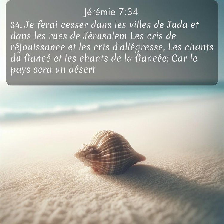 Explorez une collection d'images de versets bibliques inspirants, accompagnées de photos d'hiver telles que des paysages enneigés, des arbres givrés et des lacs gelés. Ces images reflètent la paix et la pureté de la création de Dieu, avec des polices élégantes et des couleurs lumineuses. Téléchargez et partagez des versets comme Segond Jérémie 7:34 .Les images de versets bibliques sont créées à partir des versets de la Bible Louis Segond (LSG 1910,La Sainte Bible par Louis Segond 1910). Cette traduction française de la Bible, publiée en 1910, est dans le domaine public et correspond dans les grandes lignes à la version française de la King James Bible en Anglais. Vous pouvez consulter La Bible Louis Segond gratuitement online sur notre site. Nous vous encourageons à inclure un lien vers ces pages pour faire connaître cette ressource gratuite à d'autres. L'église Renens AB est content de mettre les images à disposition gratuitement. voir Bible Louis Segond 1912