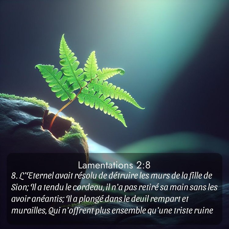 8. L'Eternel avait résolu de détruire les murs de la fille de Sion; Il a tendu le cordeau, il n'a pas retiré sa main sans les avoir anéantis; Il a plongé dans le deuil rempart et murailles, Qui n'offrent plus ensemble qu'une triste ruine.