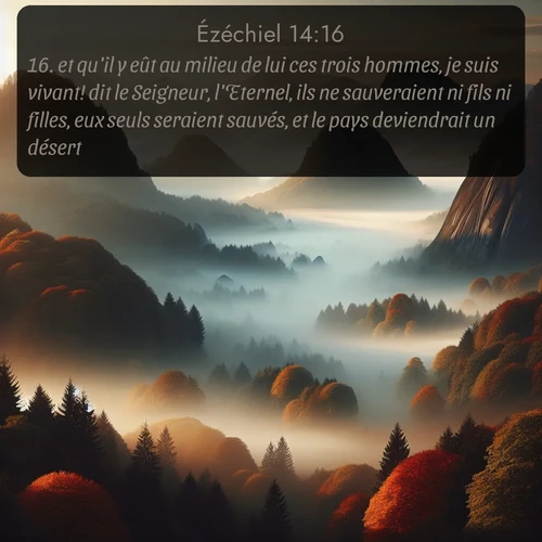 Ézéchiel 14:16 . et qu'il y eût au milieu de lui ces trois hommes, je suis vivant! dit le Seigneur, l'Eternel, ils ne sauveraient ni fils ni filles, eux seuls seraient sauvés, et le pays deviendrait un désert.