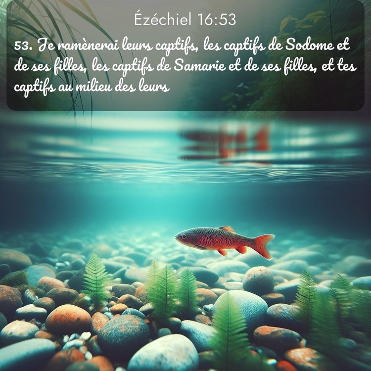 Admirez des images de versets bibliques capturant la beauté des plages, avec des eaux turquoise, des palmiers et des rivages paisibles. Ces scènes apaisantes reflètent la sérénité et la majesté de Dieu. Téléchargez et partagez des versets tels que Segond Ézéchiel 16:53 .Les images de versets bibliques sont créées à partir des versets de la Bible Louis Segond (LSG 1910,La Sainte Bible par Louis Segond 1910). Cette traduction française de la Bible, publiée en 1910, est dans le domaine public et correspond dans les grandes lignes à la version française de la King James Bible en Anglais. Vous pouvez consulter La Bible Louis Segond gratuitement online sur notre site. Nous vous encourageons à inclure un lien vers ces pages pour faire connaître cette ressource gratuite à d'autres. L'église Renens AB est content de mettre les images à disposition gratuitement. voir Bible Louis Segond 1912