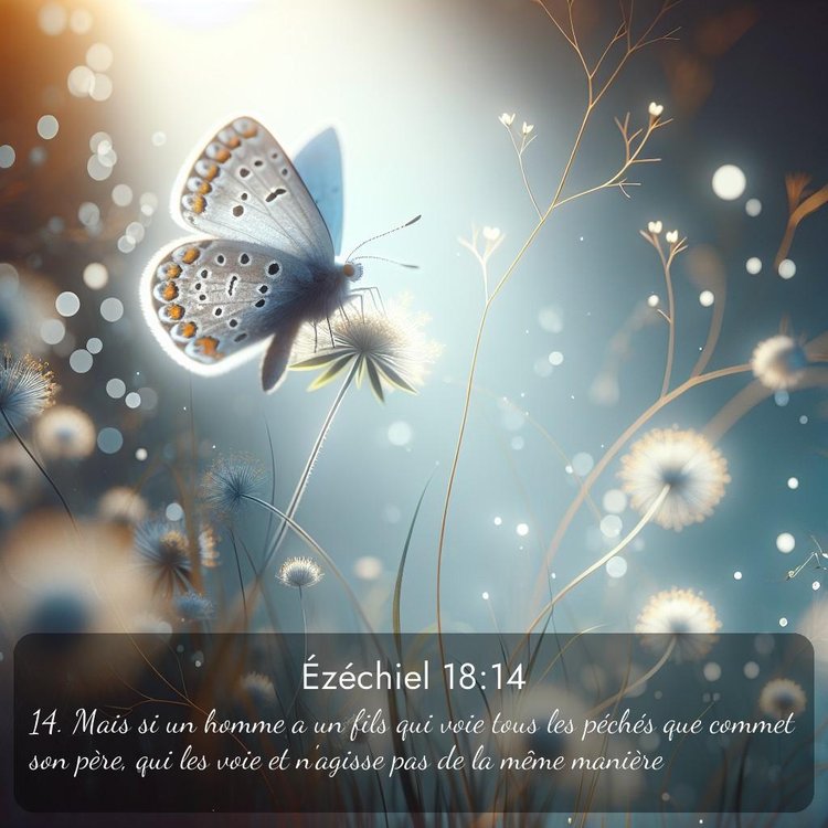 Admirez des images bibliques évoquant l’automne, avec des couleurs chaudes de feuilles mortes, des champs moissonnés et des bois tranquilles. Ces paysages inspirants reflètent la transition et la beauté de la création divine. Téléchargez des versets comme Segond Ézéchiel 18:14 .Les images de versets bibliques sont créées à partir des versets de la Bible Louis Segond (LSG 1910,La Sainte Bible par Louis Segond 1910). Cette traduction française de la Bible, publiée en 1910, est dans le domaine public et correspond dans les grandes lignes à la version française de la King James Bible en Anglais. Vous pouvez consulter La Bible Louis Segond gratuitement online sur notre site. Nous vous encourageons à inclure un lien vers ces pages pour faire connaître cette ressource gratuite à d'autres. L'église Renens AB est content de mettre les images à disposition gratuitement. voir Bible Louis Segond 1912