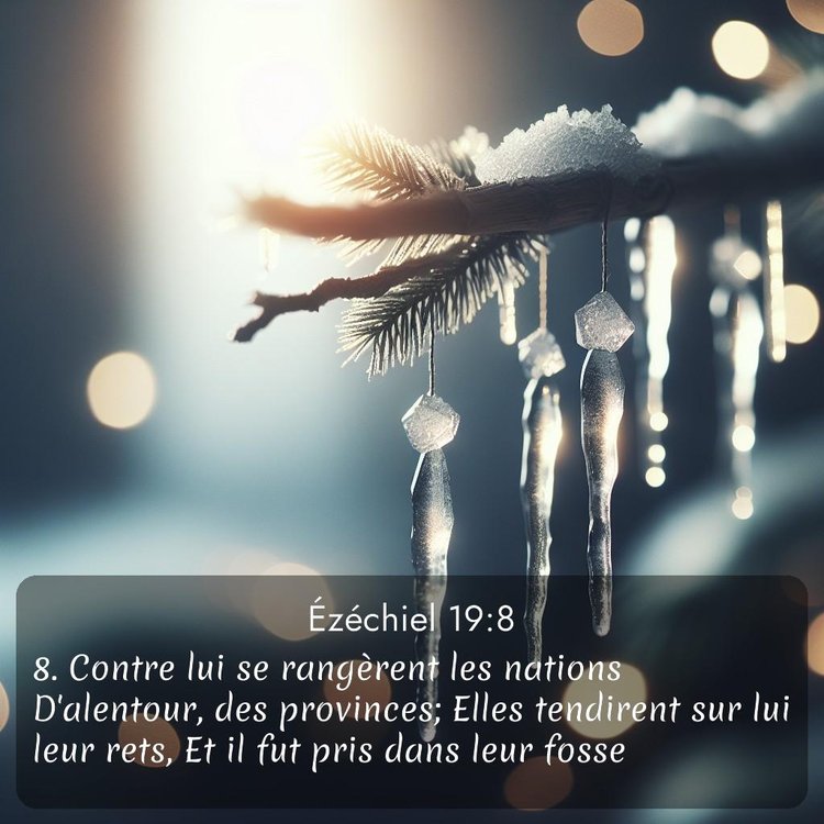 Explorez une collection printanière d'images bibliques, avec des paysages de collines verdoyantes, des fleurs sauvages et des cours d’eau cristallins. Ces images symbolisent l’épanouissement de la création divine. Téléchargez des versets tels que Segond Ézéchiel 19:8 .Les images de versets bibliques sont créées à partir des versets de la Bible Louis Segond (LSG 1910,La Sainte Bible par Louis Segond 1910). Cette traduction française de la Bible, publiée en 1910, est dans le domaine public et correspond dans les grandes lignes à la version française de la King James Bible en Anglais. Vous pouvez consulter La Bible Louis Segond gratuitement online sur notre site. Nous vous encourageons à inclure un lien vers ces pages pour faire connaître cette ressource gratuite à d'autres. L'église Renens AB est content de mettre les images à disposition gratuitement. voir Bible Louis Segond 1912