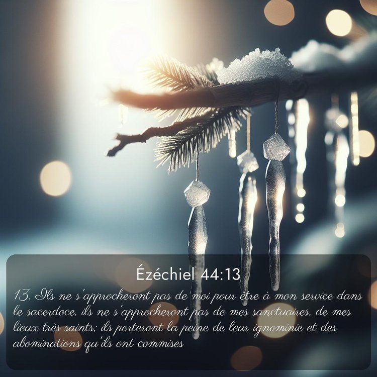 Parcourez une galerie de versets bibliques associés à des scènes d'été, comme des champs de blé doré, des cieux lumineux et des plages ensoleillées. Ces images transmettent la joie et la chaleur de la création divine. Téléchargez et partagez des versets comme Segond Ézéchiel 44:13 .Les images de versets bibliques sont créées à partir des versets de la Bible Louis Segond (LSG 1910,La Sainte Bible par Louis Segond 1910). Cette traduction française de la Bible, publiée en 1910, est dans le domaine public et correspond dans les grandes lignes à la version française de la King James Bible en Anglais. Vous pouvez consulter La Bible Louis Segond gratuitement online sur notre site. Nous vous encourageons à inclure un lien vers ces pages pour faire connaître cette ressource gratuite à d'autres. L'église Renens AB est content de mettre les images à disposition gratuitement. voir Bible Louis Segond 1912