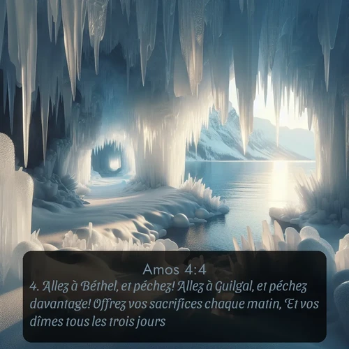 Amos 4:4 . Allez à Béthel, et péchez! Allez à Guilgal, et péchez davantage! Offrez vos sacrifices chaque matin, Et vos dîmes tous les trois jours!