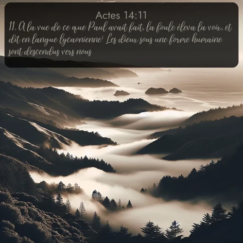Actes 14:11 . A la vue de ce que Paul avait fait, la foule éleva la voix, et dit en langue lycaonienne: Les dieux sous une forme humaine sont descendus vers nous.