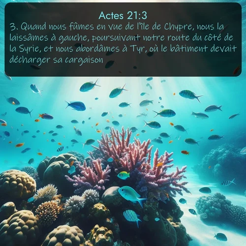 Actes 21:3 . Quand nous fûmes en vue de l'île de Chypre, nous la laissâmes à gauche, poursuivant notre route du côté de la Syrie, et nous abordâmes à Tyr, où le bâtiment devait décharger sa cargaison.