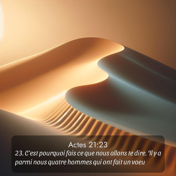 Explorez une collection exceptionnelle d'images de versets bibliques accompagnées de photos de la nature, mettant en scène des montagnes enneigées, des forêts calmes et des lacs immobiles. Ces images aux teintes lumineuses et aux polices variées apportent sérénité et inspiration. Partagez des versets édifiants tels que Segond Actes 21:23 .Les images de versets bibliques sont créées à partir des versets de la Bible Louis Segond (LSG 1910,La Sainte Bible par Louis Segond 1910). Cette traduction française de la Bible, publiée en 1910, est dans le domaine public et correspond dans les grandes lignes à la version française de la King James Bible en Anglais. Vous pouvez consulter La Bible Louis Segond gratuitement online sur notre site. Nous vous encourageons à inclure un lien vers ces pages pour faire connaître cette ressource gratuite à d'autres. L'église Renens AB est content de mettre les images à disposition gratuitement. voir Bible Louis Segond 1912