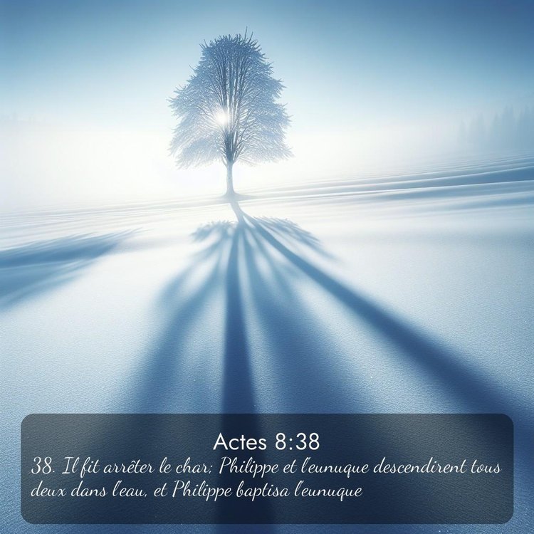 Admirez des images de versets bibliques illustrées par des scènes désertiques, comme des couchers de soleil sur les dunes, des rochers imposants et des cactus solitaires. Ces images capturent la majesté de Dieu dans des lieux arides. Téléchargez et partagez des versets tels que Segond Actes 8:38 .Les images de versets bibliques sont créées à partir des versets de la Bible Louis Segond (LSG 1910,La Sainte Bible par Louis Segond 1910). Cette traduction française de la Bible, publiée en 1910, est dans le domaine public et correspond dans les grandes lignes à la version française de la King James Bible en Anglais. Vous pouvez consulter La Bible Louis Segond gratuitement online sur notre site. Nous vous encourageons à inclure un lien vers ces pages pour faire connaître cette ressource gratuite à d'autres. L'église Renens AB est content de mettre les images à disposition gratuitement. voir Bible Louis Segond 1912