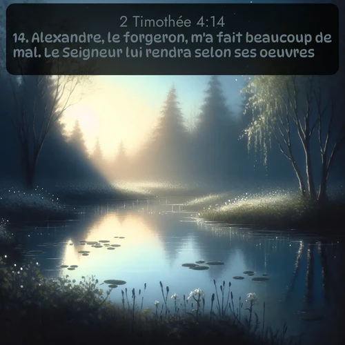 2 Timothée 4:14 . Alexandre, le forgeron, m'a fait beaucoup de mal. Le Seigneur lui rendra selon ses oeuvres.