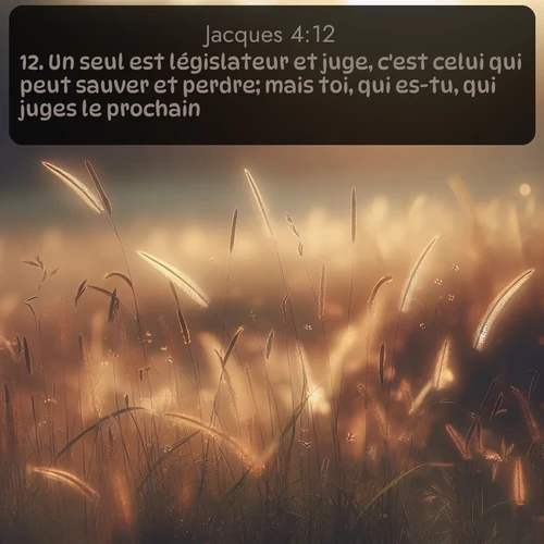 Jacques 4:12 . Un seul est législateur et juge, c'est celui qui peut sauver et perdre; mais toi, qui es-tu, qui juges le prochain?