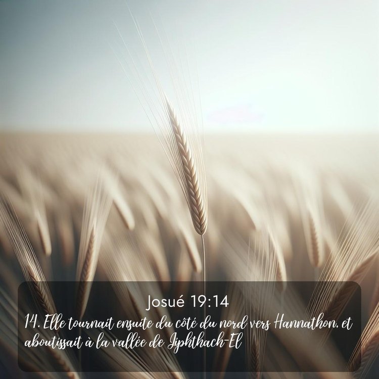 Parcourez une galerie de versets bibliques associés à des scènes d'été, comme des champs de blé doré, des cieux lumineux et des plages ensoleillées. Ces images transmettent la joie et la chaleur de la création divine. Téléchargez et partagez des versets comme Segond Josué 19:14 .Les images de versets bibliques sont créées à partir des versets de la Bible Louis Segond (LSG 1910,La Sainte Bible par Louis Segond 1910). Cette traduction française de la Bible, publiée en 1910, est dans le domaine public et correspond dans les grandes lignes à la version française de la King James Bible en Anglais. Vous pouvez consulter La Bible Louis Segond gratuitement online sur notre site. Nous vous encourageons à inclure un lien vers ces pages pour faire connaître cette ressource gratuite à d'autres. L'église Renens AB est content de mettre les images à disposition gratuitement. voir Bible Louis Segond 1912