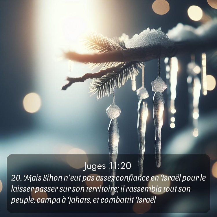 Parcourez une galerie de versets bibliques associés à des scènes d'été, comme des champs de blé doré, des cieux lumineux et des plages ensoleillées. Ces images transmettent la joie et la chaleur de la création divine. Téléchargez et partagez des versets comme Segond Juges 11:20 .Les images de versets bibliques sont créées à partir des versets de la Bible Louis Segond (LSG 1910,La Sainte Bible par Louis Segond 1910). Cette traduction française de la Bible, publiée en 1910, est dans le domaine public et correspond dans les grandes lignes à la version française de la King James Bible en Anglais. Vous pouvez consulter La Bible Louis Segond gratuitement online sur notre site. Nous vous encourageons à inclure un lien vers ces pages pour faire connaître cette ressource gratuite à d'autres. L'église Renens AB est content de mettre les images à disposition gratuitement. voir Bible Louis Segond 1912