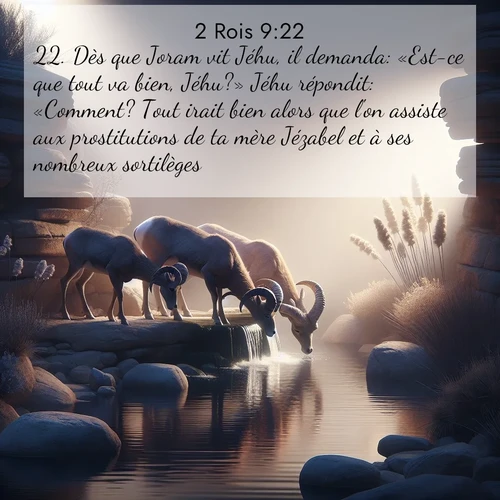 22. Dès que Joram vit Jéhu, il demanda: «Est-ce que tout va bien, Jéhu?» Jéhu répondit: «Comment? Tout irait bien alors que l'on assiste aux prostitutions de ta mère Jézabel et à ses nombreux sortilèges!»