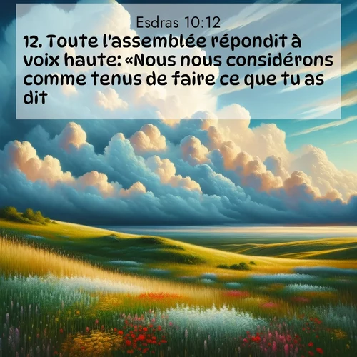 Esdras 10:12 . Toute l'assemblée répondit à voix haute: «Nous nous considérons comme tenus de faire ce que tu as dit,