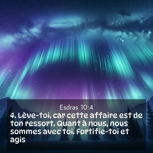 Esdras 10:4 . Lève-toi, car cette affaire est de ton ressort. Quant à nous, nous sommes avec toi. Fortifie-toi et agis!»